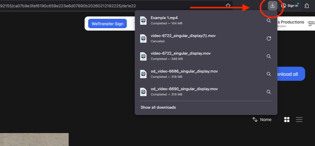 Now all that is left is to wait for your videos to finish downloading. Once they are done downloading you can find them in the top right corner of your browser with the icon that shows and arrow pointing down. Click on that and you will see your videos. Then Click and drag them onto your desktop or into whichever folder you want to store them in.