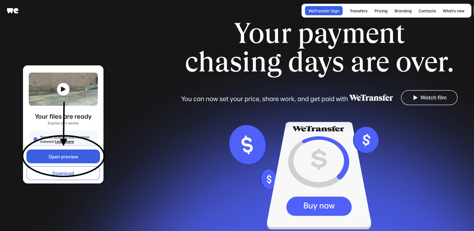 That button will take you to wetransfer. There is then a button that says “Open Preview”. Click on that button.